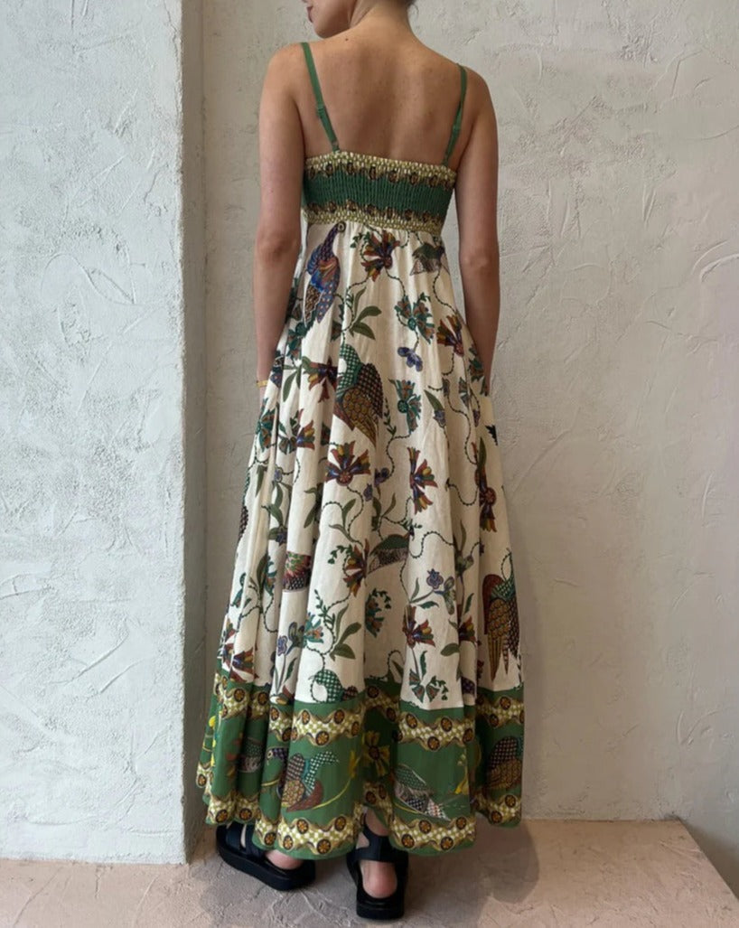 Animals and Nature Printing Cotton Linen Dress