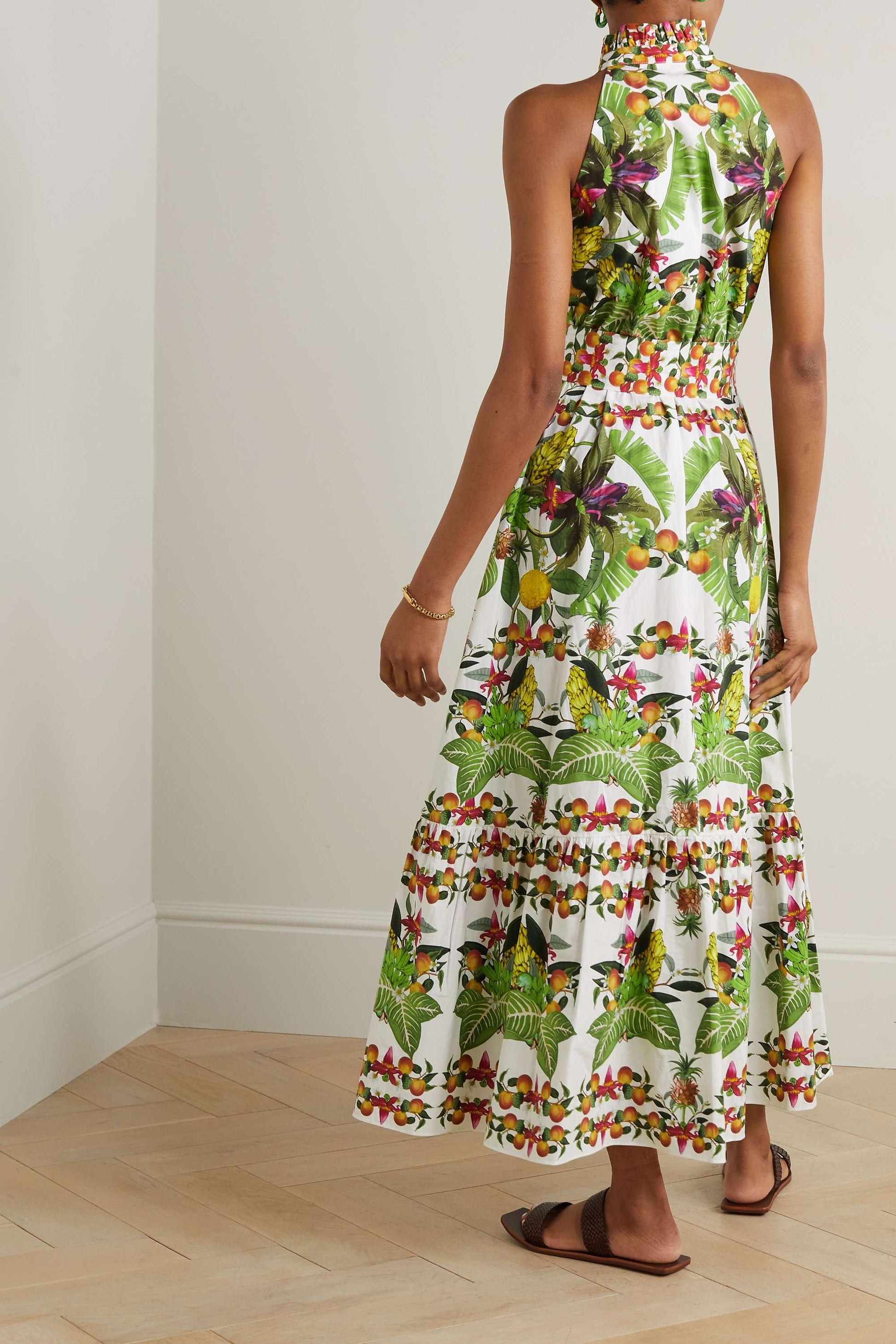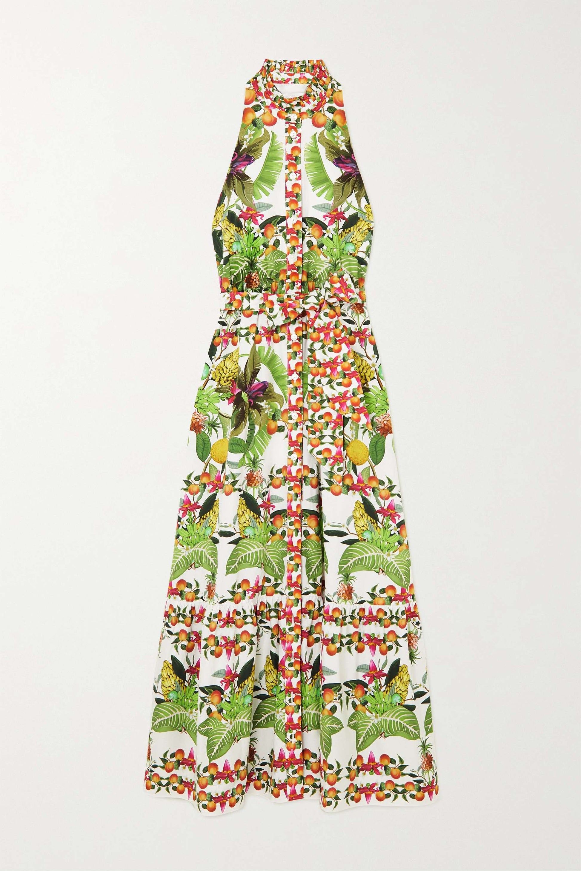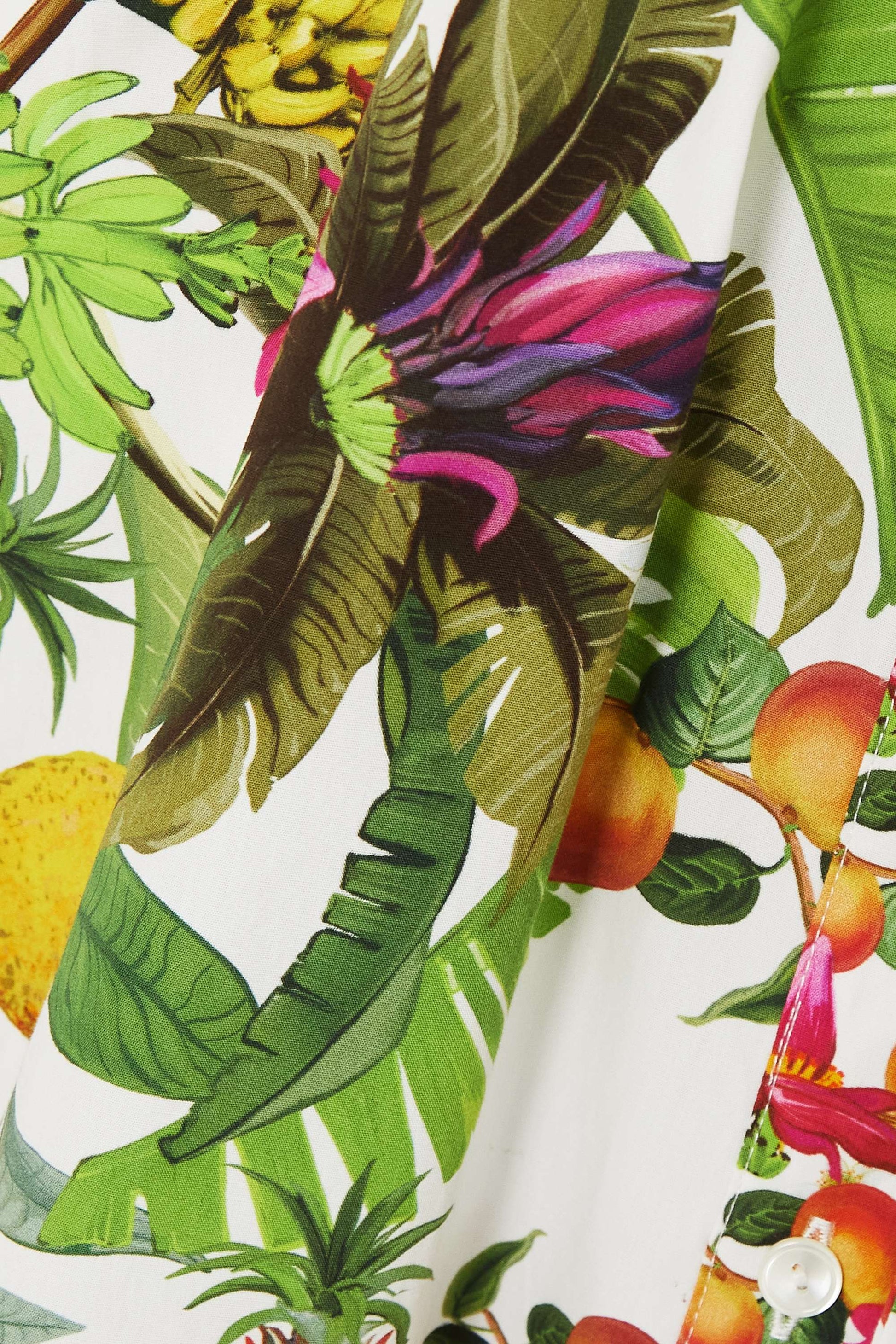 You'll want to pack the dress for your next getaway. It's cut from breezy cotton-poplin decorated with tropical blooms and zesty citrus fruit and has a high neckline that can be unbuttoned. Ground the tiered maxi skirt with a pair of leather sandals.