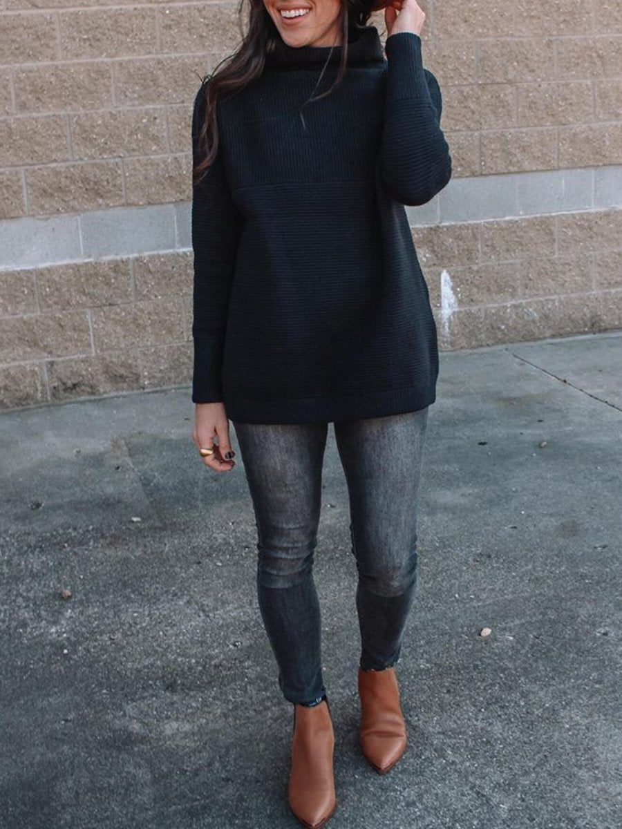 This cozy ribbed turtleneck sweater is all about getting you all layered up and looking fly in a flash! The simple design boasts stretchy knit fabric, dropped shoulders, and an overall relaxed silhouette. Also available in white, army green, grey, and linen.