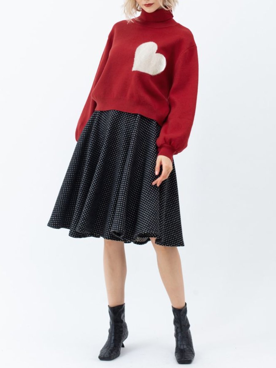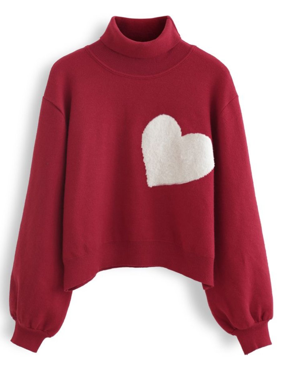 Would you be mine in the My Heart Sweater? Soft & cozy fabric provides all-day comfort. It features a big cute heart pattern at front with high neck and long sleeves.