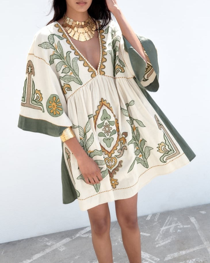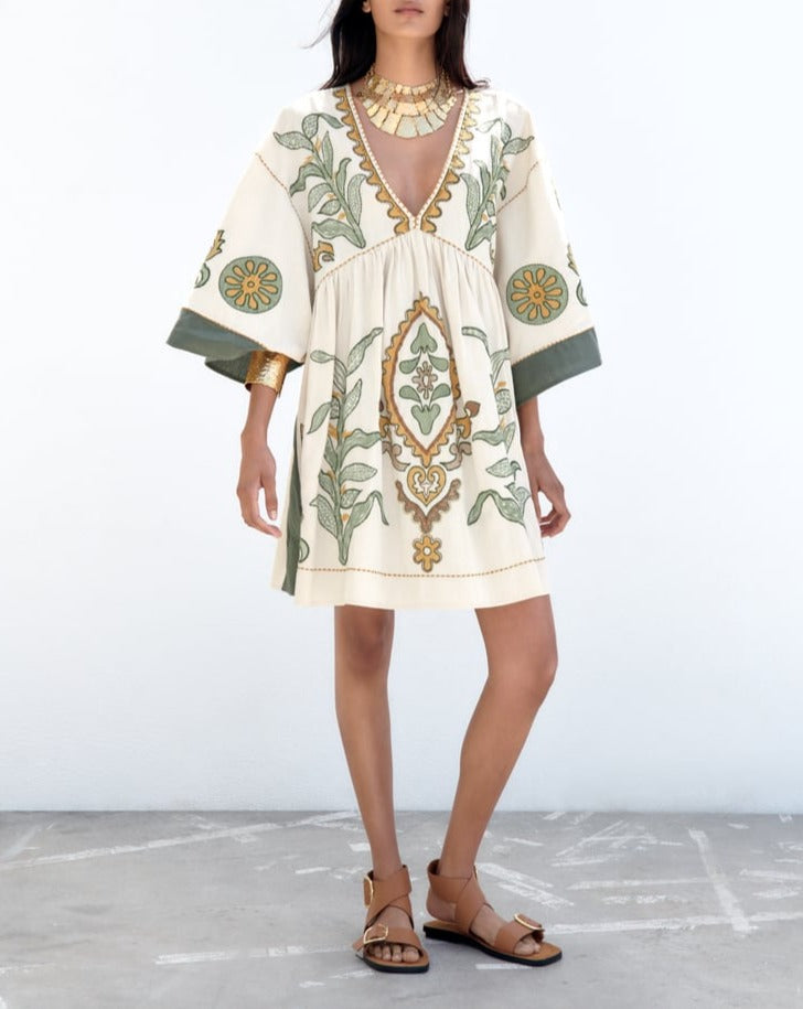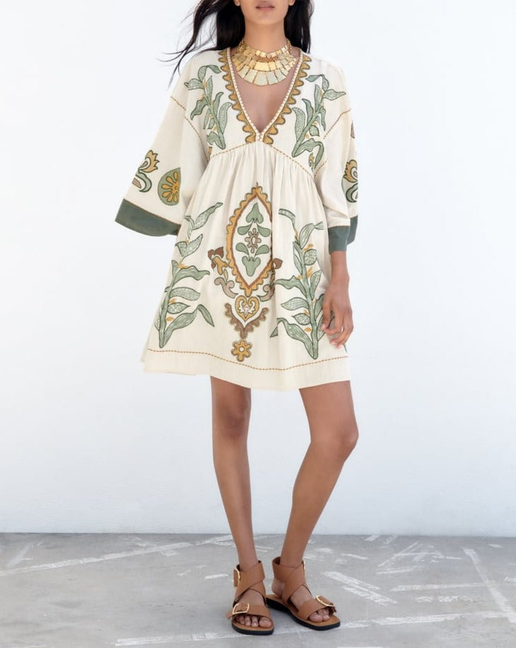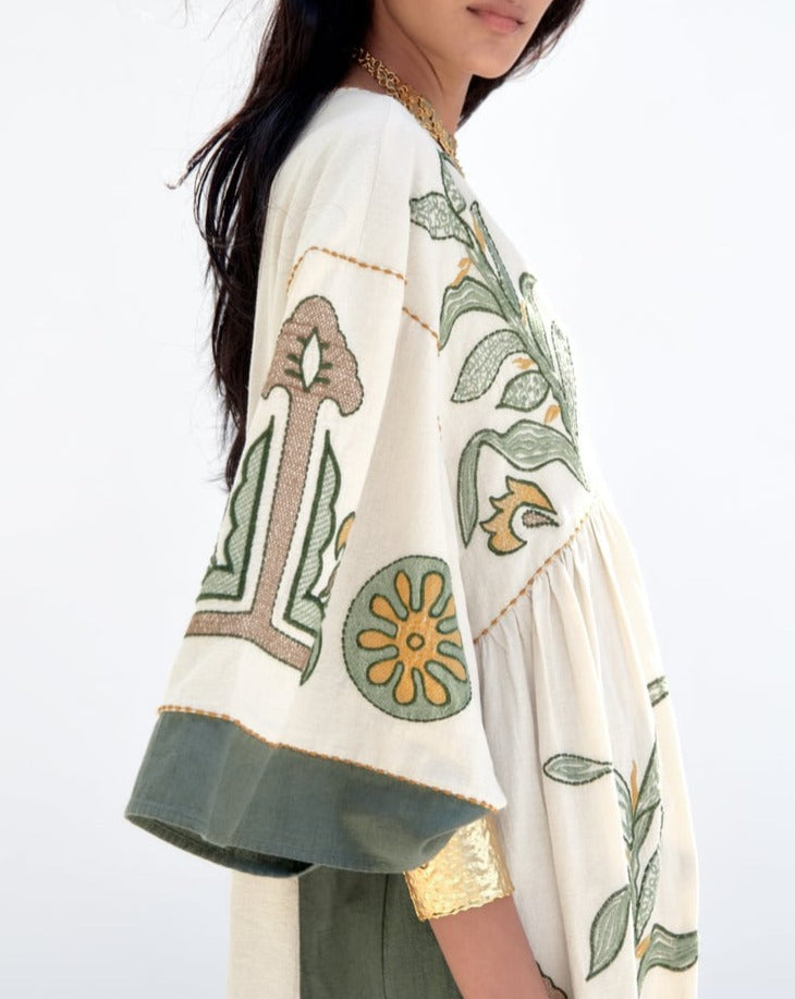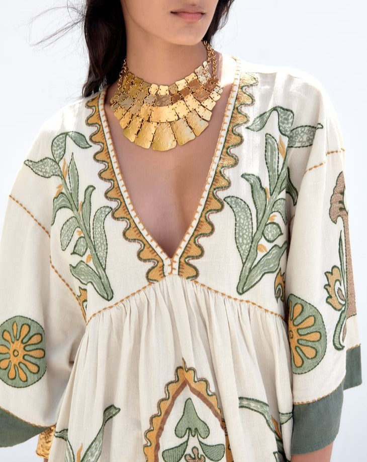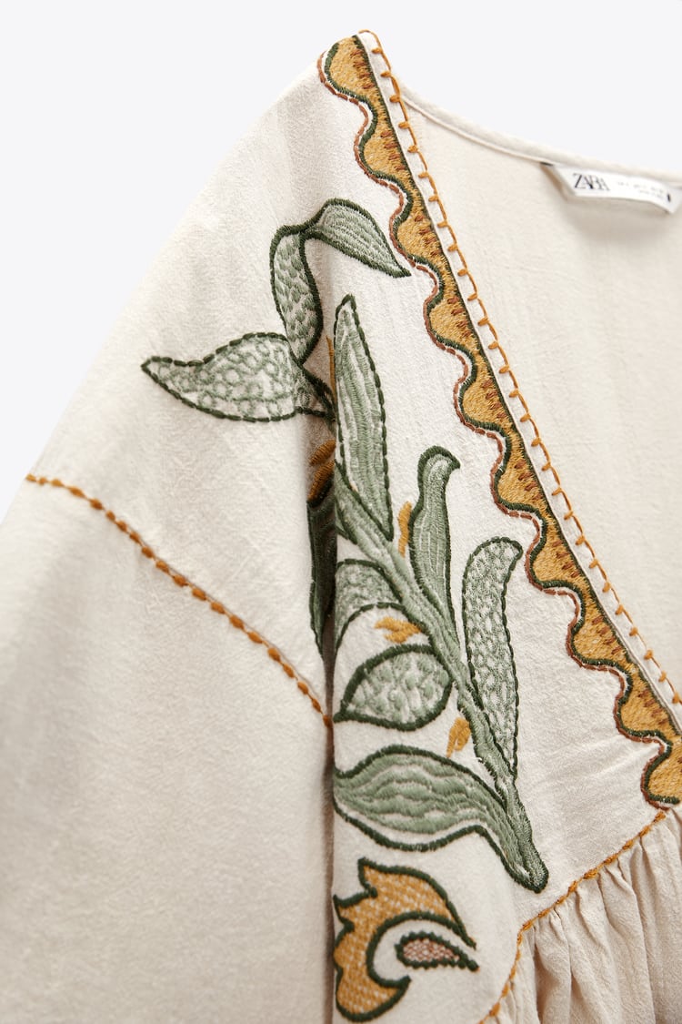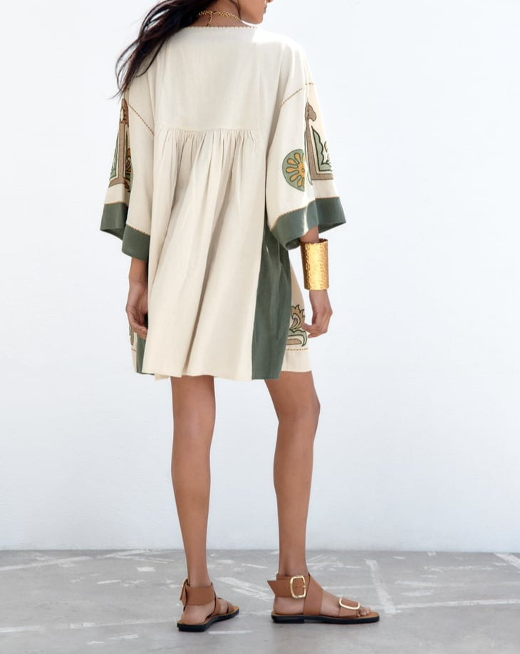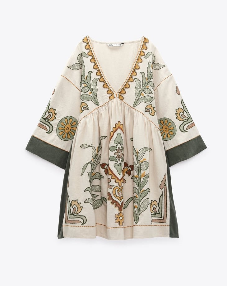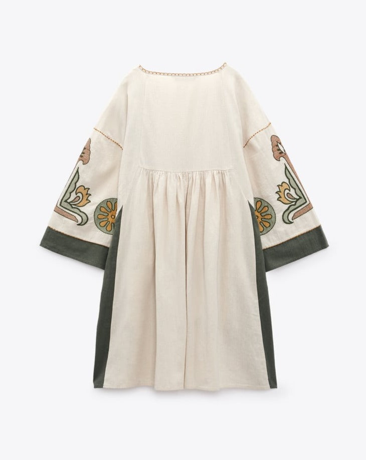 EMBROIDERED LINEN BLEND DRESS