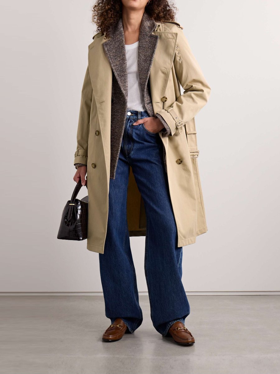 Fashion Lace-Up Double-Breasted Twill Trench Coat