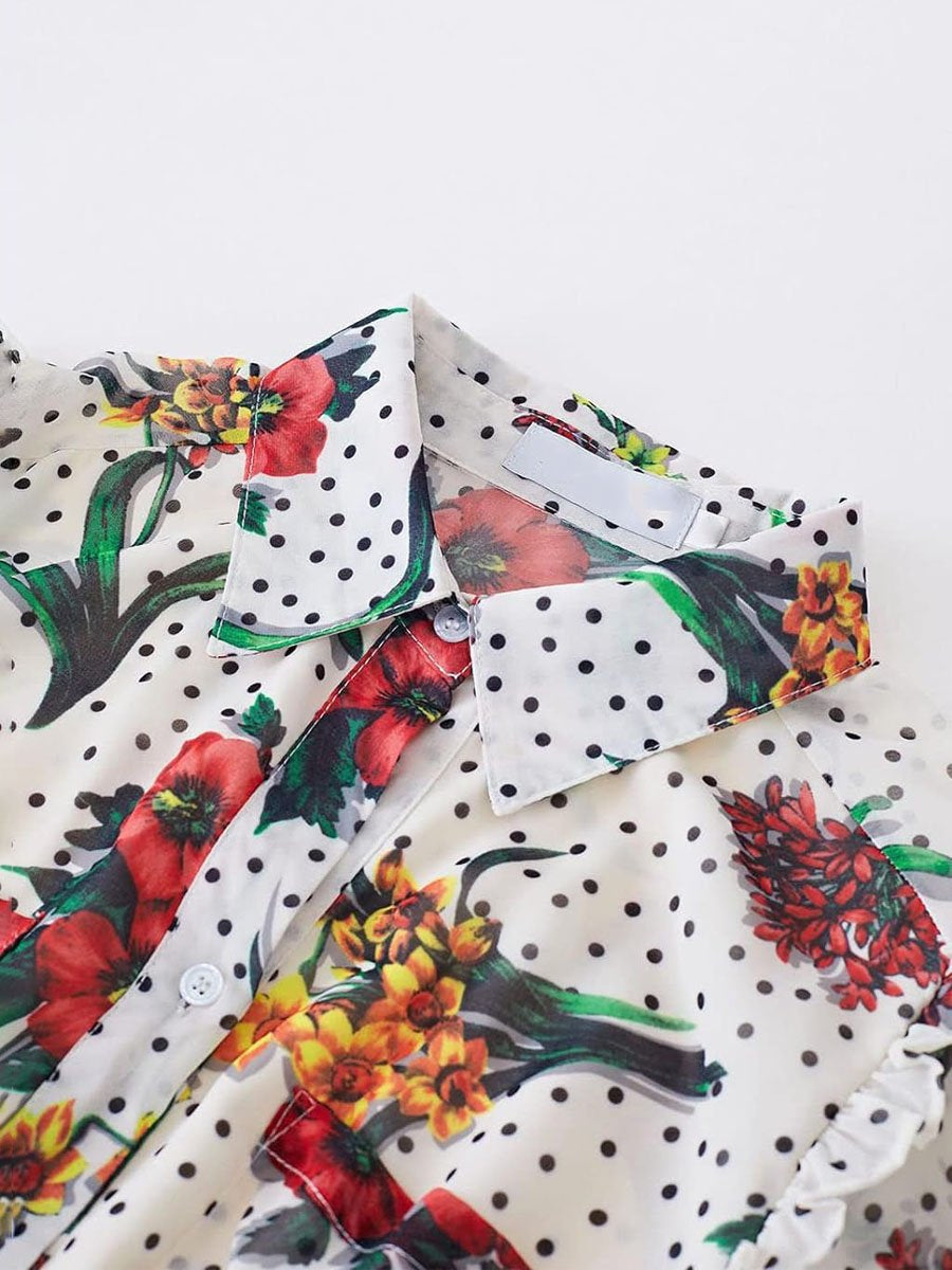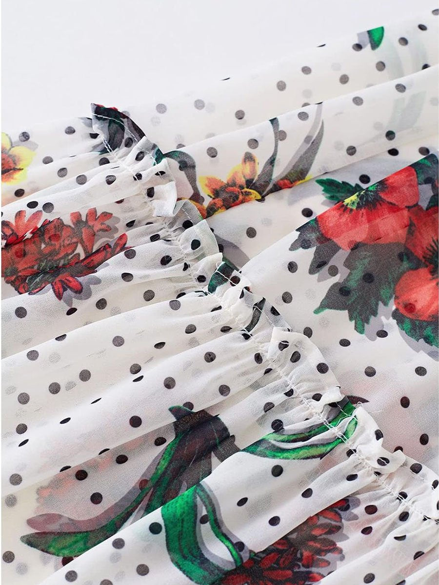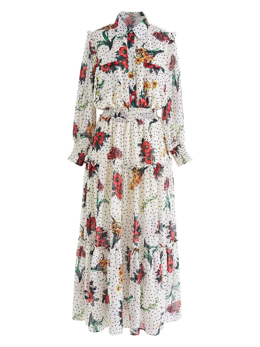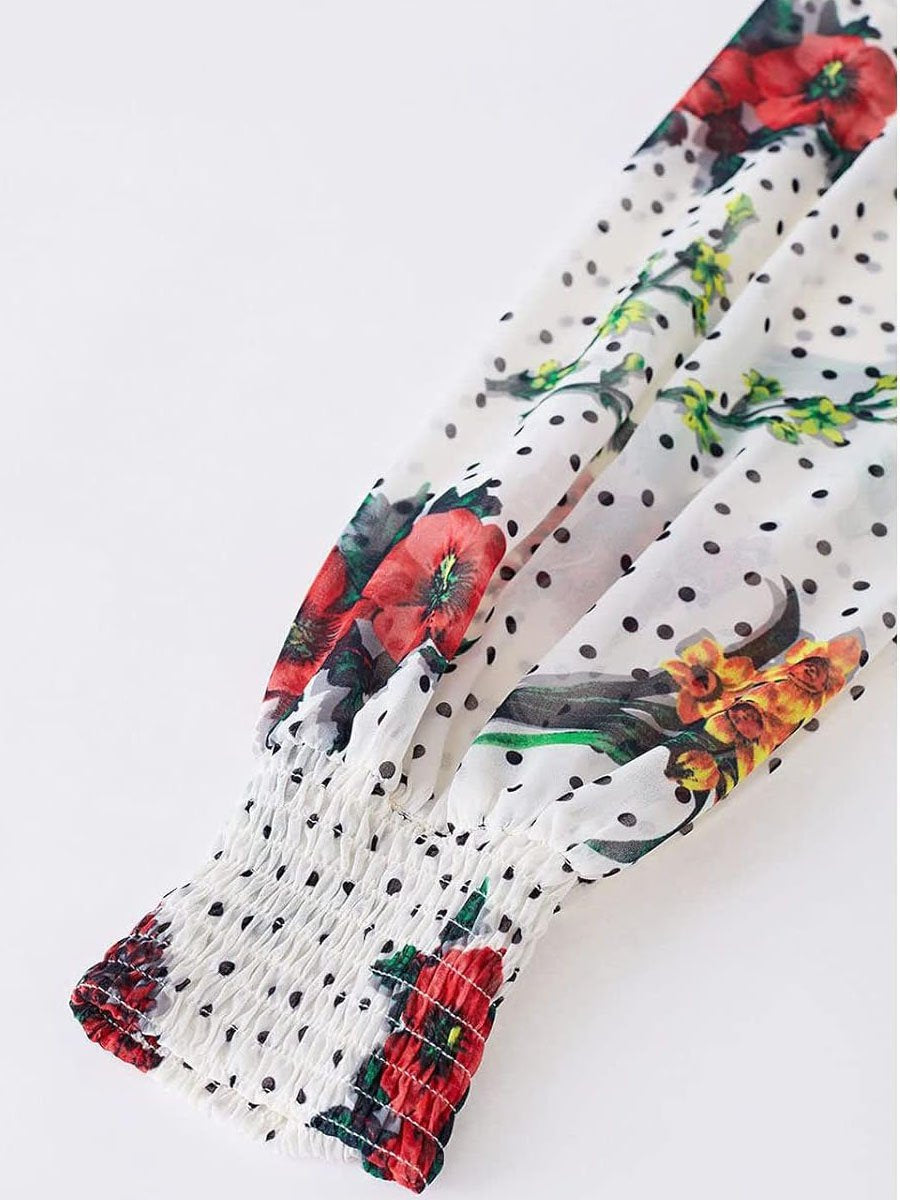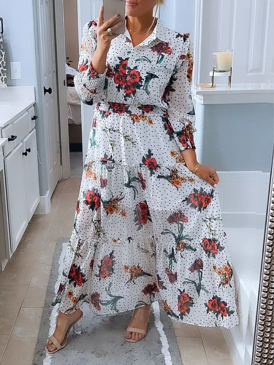 Floral Print Long Sleeve Ruffe Dress