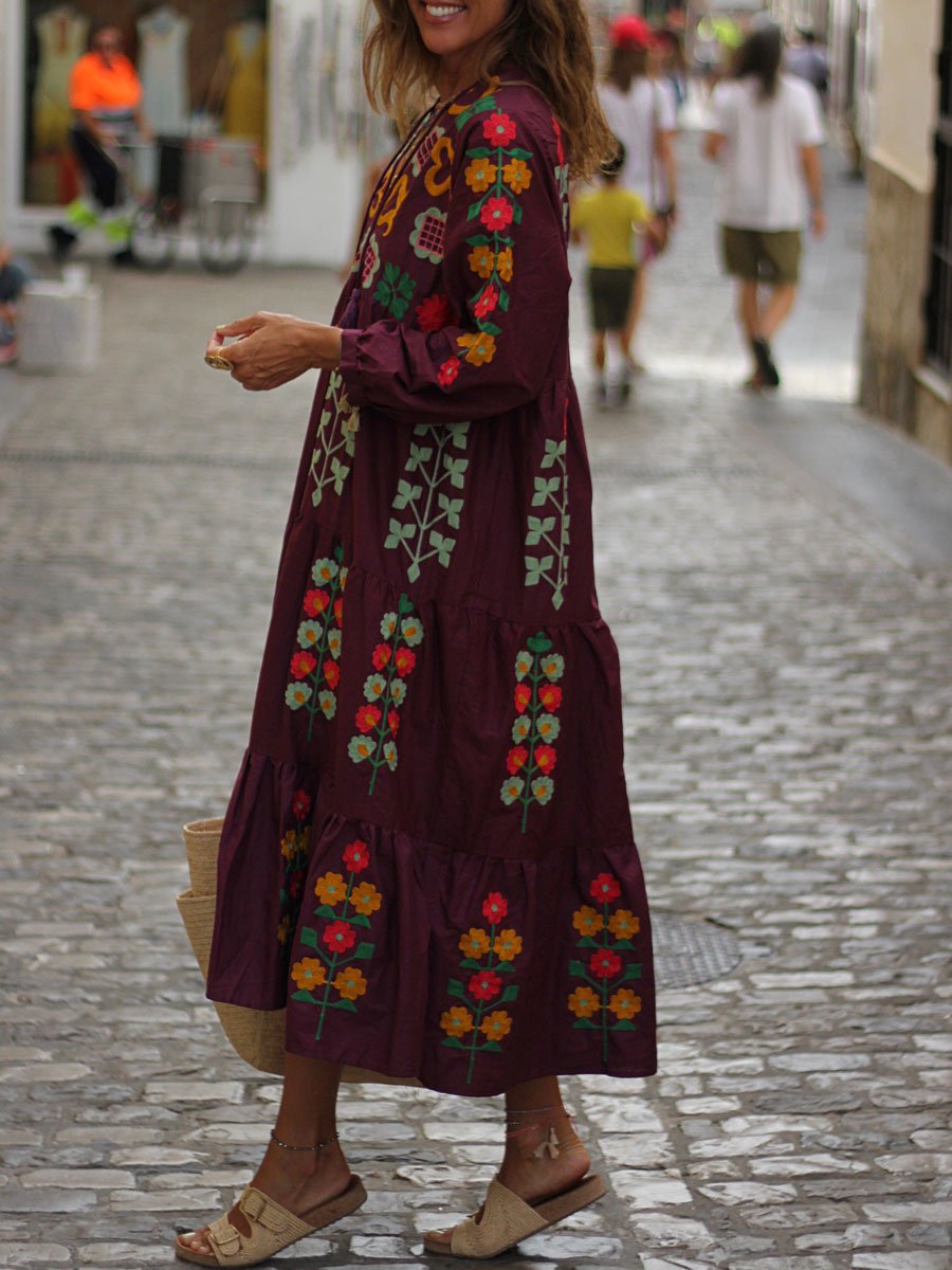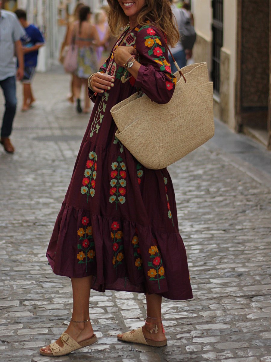 Floral Print V Neck Bohemian Dress
