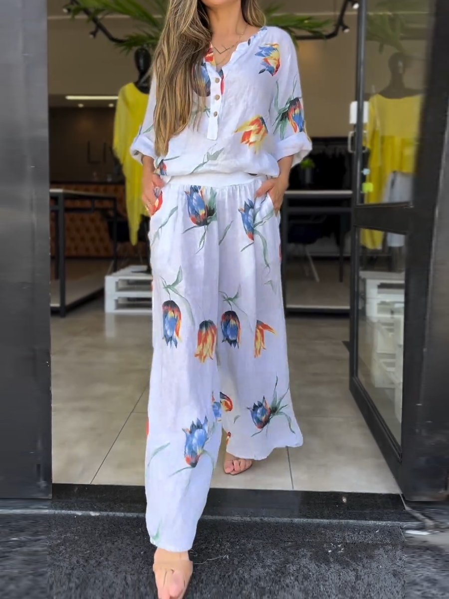 Long-sleeved Floral Loose Fashionable Casual Two-piece Set
