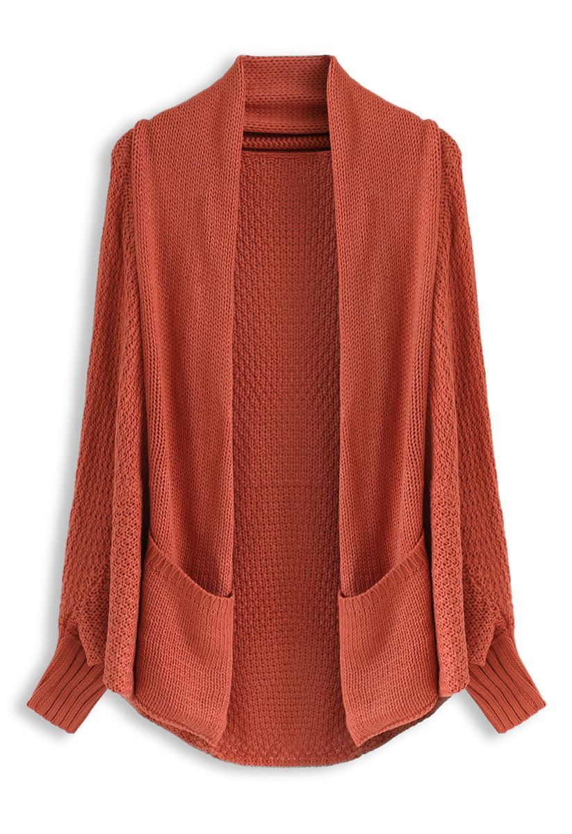 This draped wrap cardigan is light-weight knit fabric with front pockets for times you crave a light, cozy layer at home or on the go.