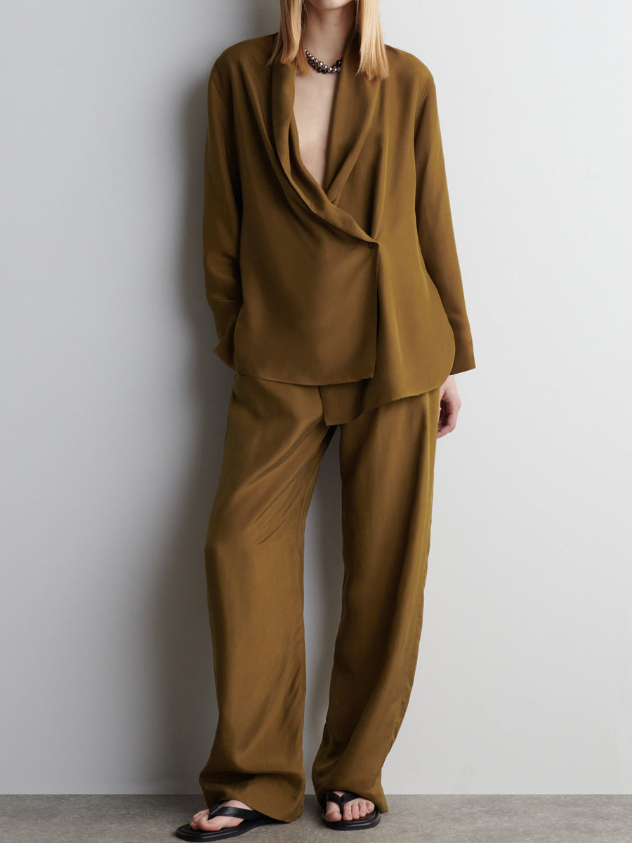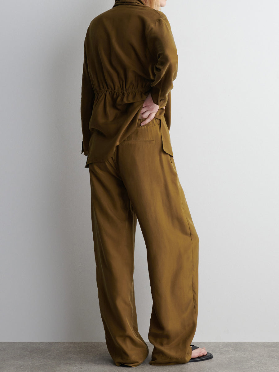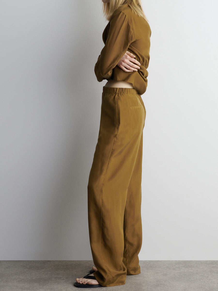 Made from fluid mulberry-silk crepe, these pants are cut in a flowing straight-leg silhouette and feature an elasticated waist that cinches using the internal drawstring. They come in a rich ochre hue that will style well with a palette of neutrals.