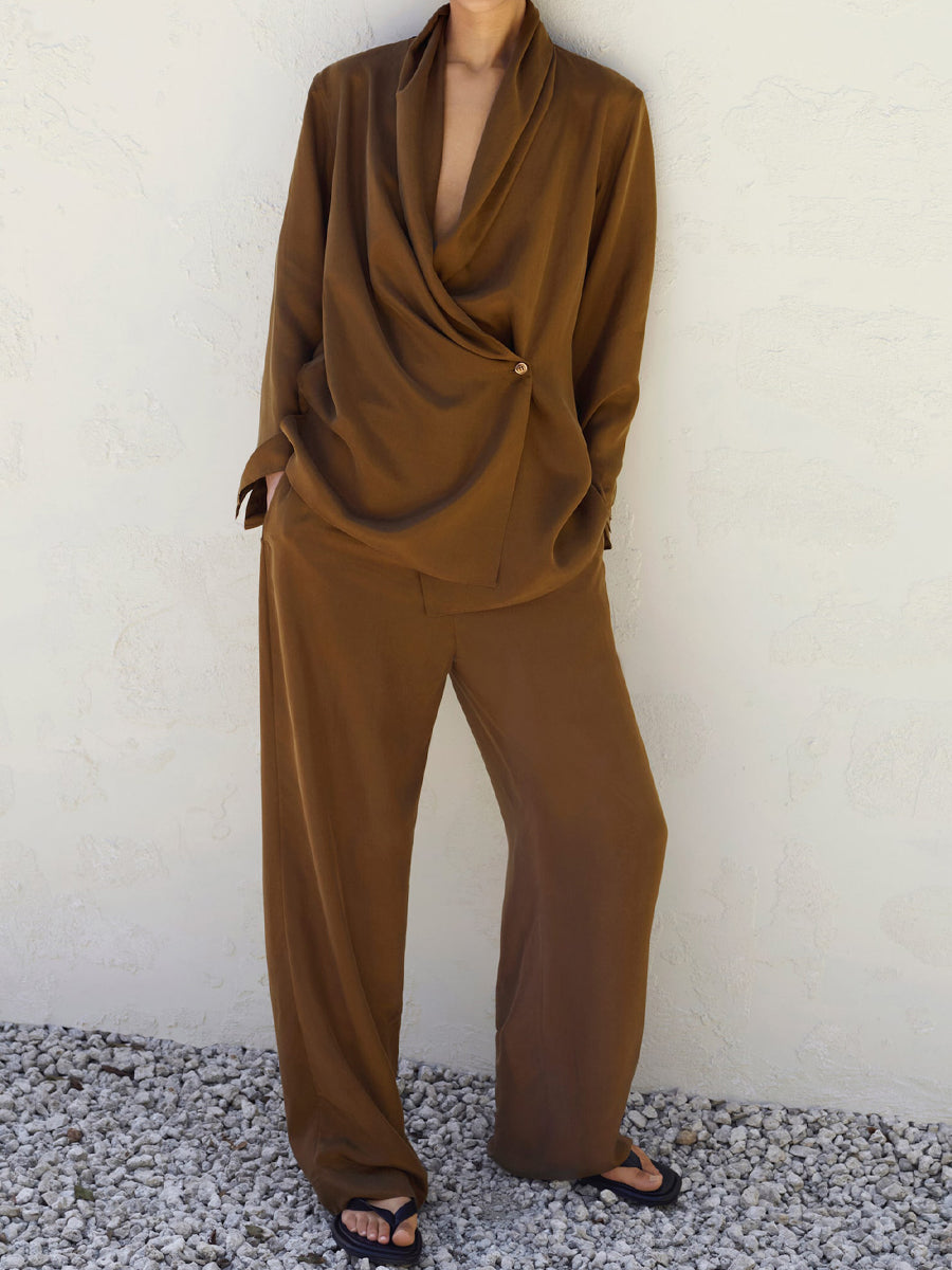 Shawl Lapels V-neck Two Pieces Set