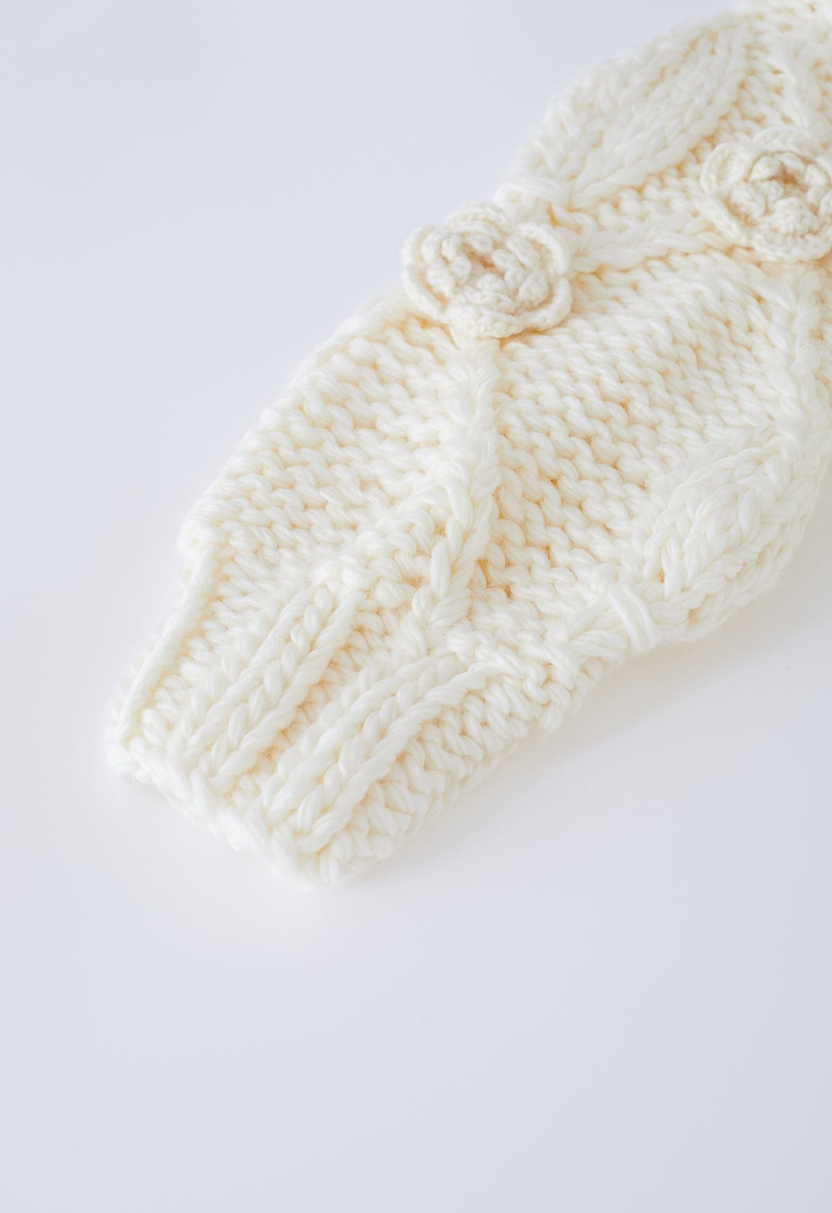 Our handmade chunky knit cardigan is an essential item that you won’t miss! It has delicate stitch roses and marble texture button trimming. With a v-neckline and cropped length design, this cardigan is easy to match with any of your outfit ideas.