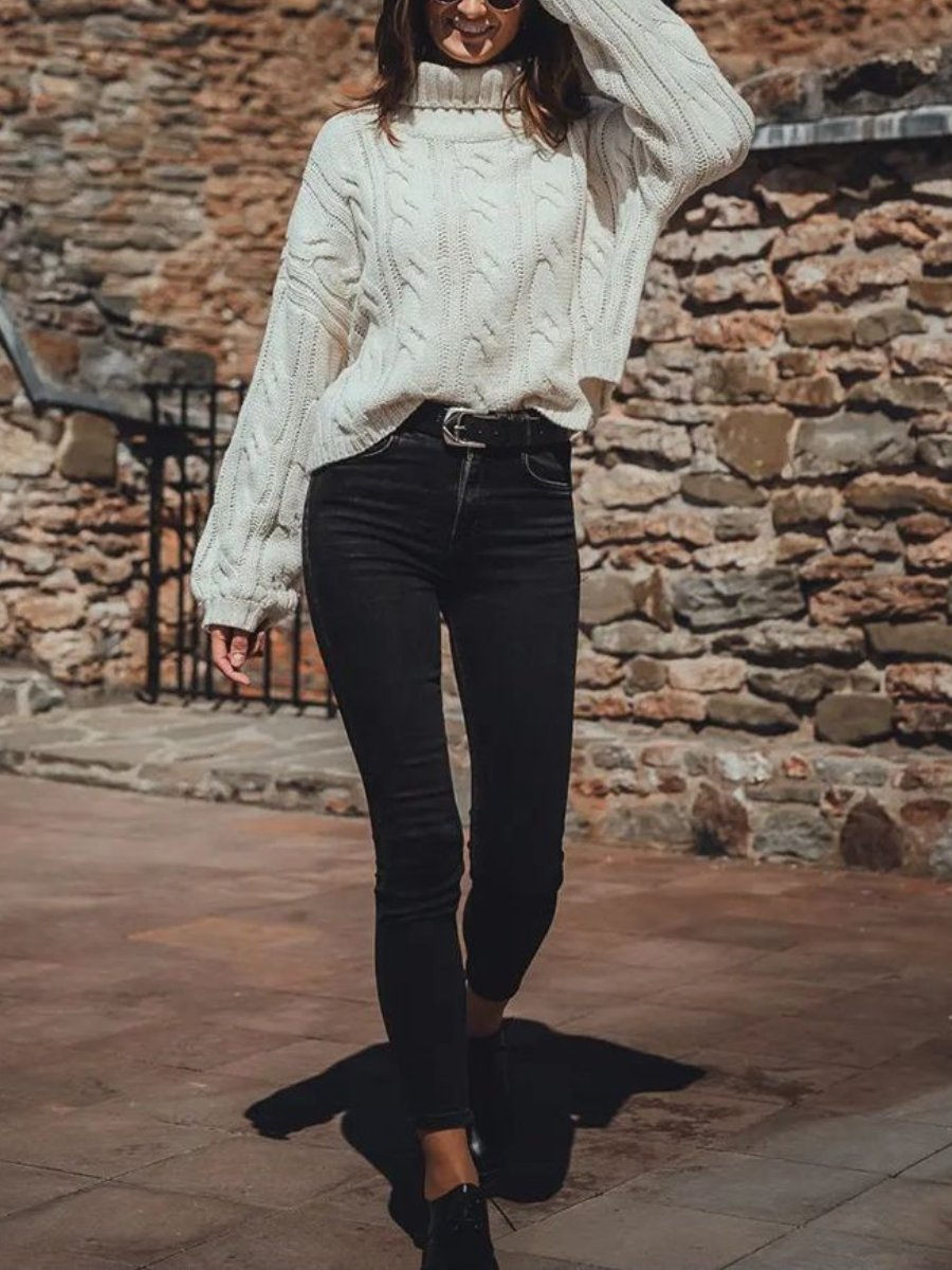 A wear-everywhere sweater is what you'll need in TONS this winter and we've got you covered. Slip into this mid-weight, chic braid texture boasting turtleneck and long sleeves with dropped shoulders. It's a sweater in crop length you can pair with any and everything and you'll always look completely put-together.