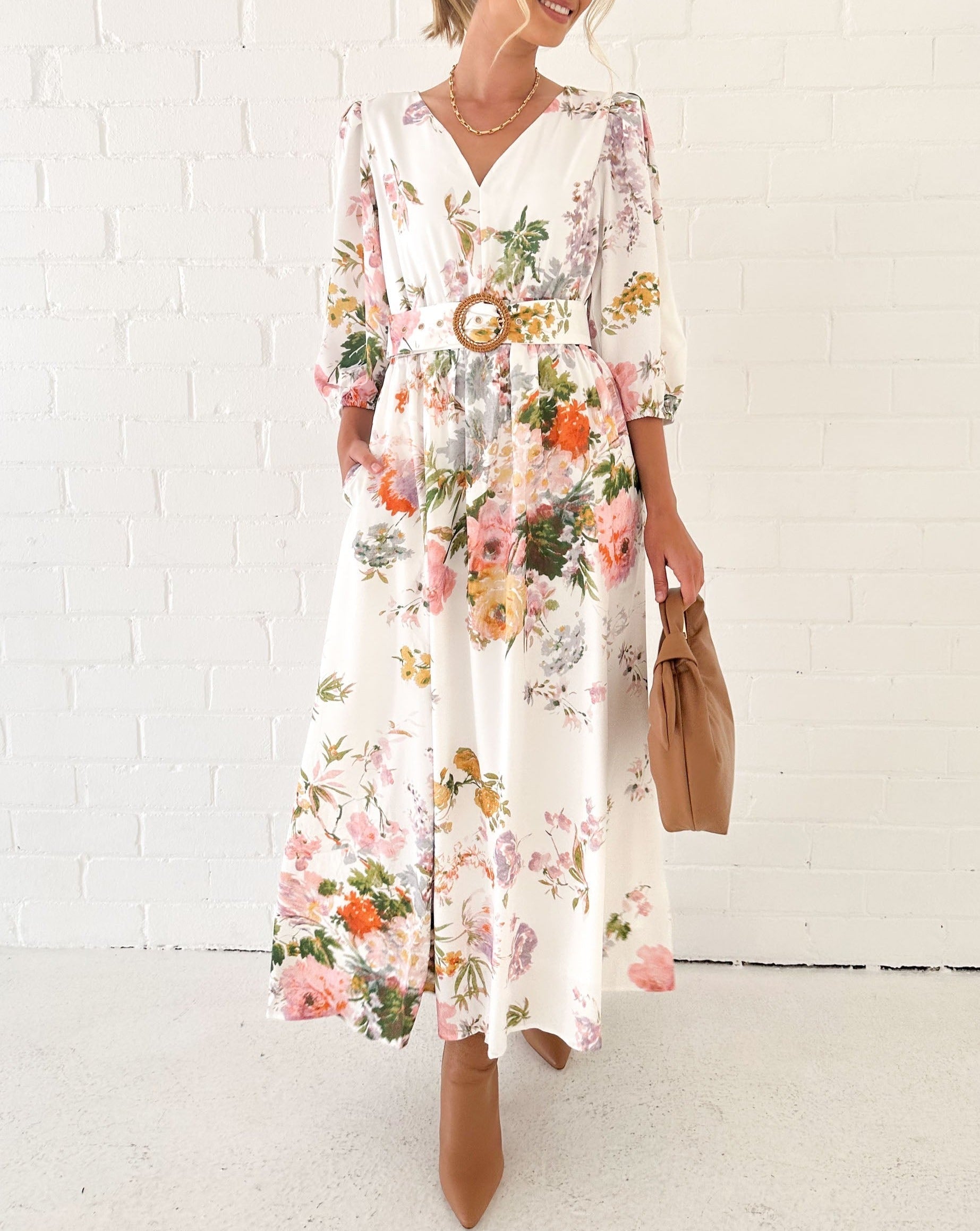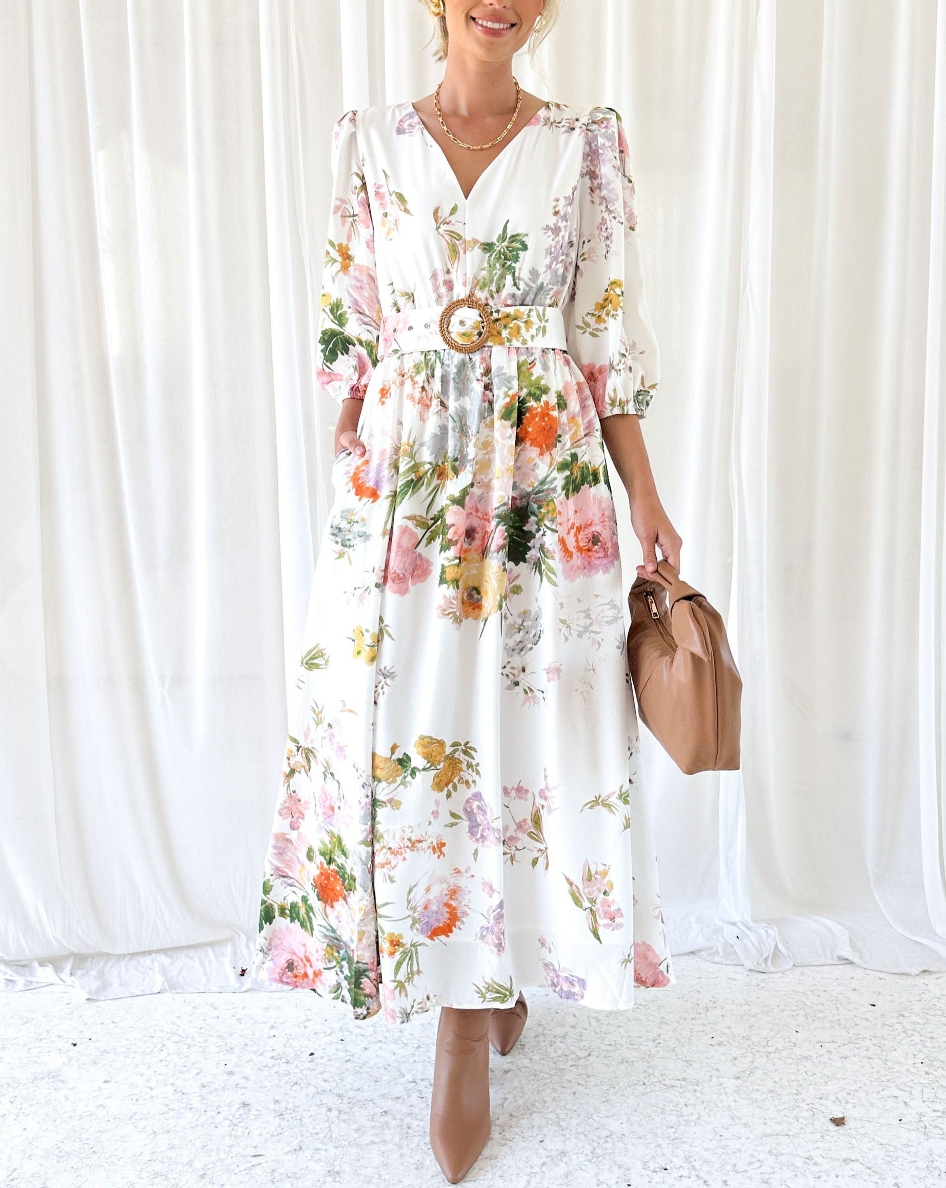 White Floral Midi Dress