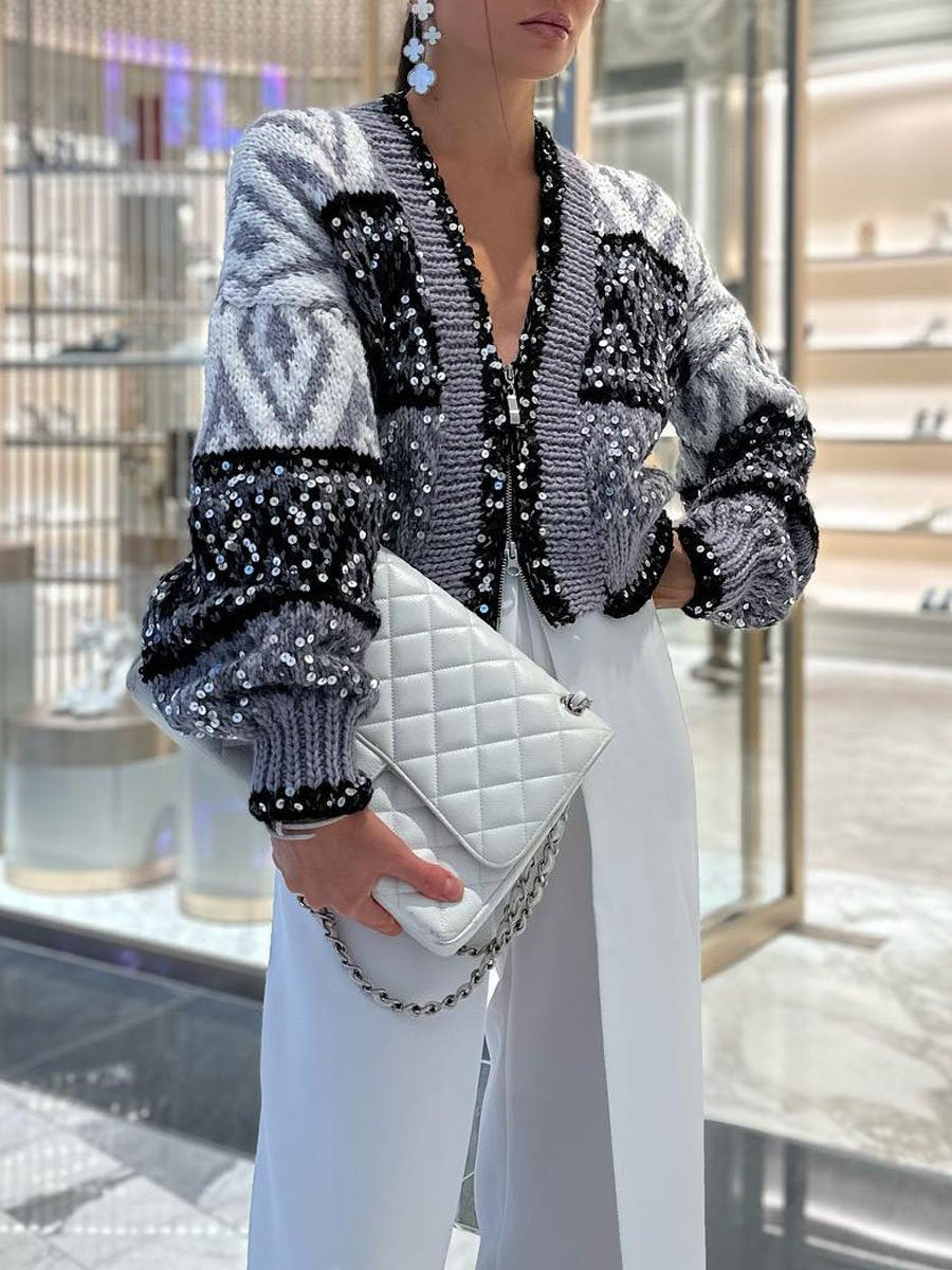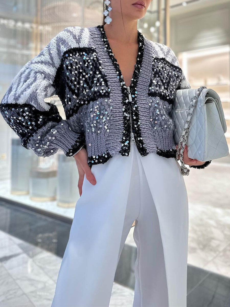 Zip Up Sequin Short Cardigan
